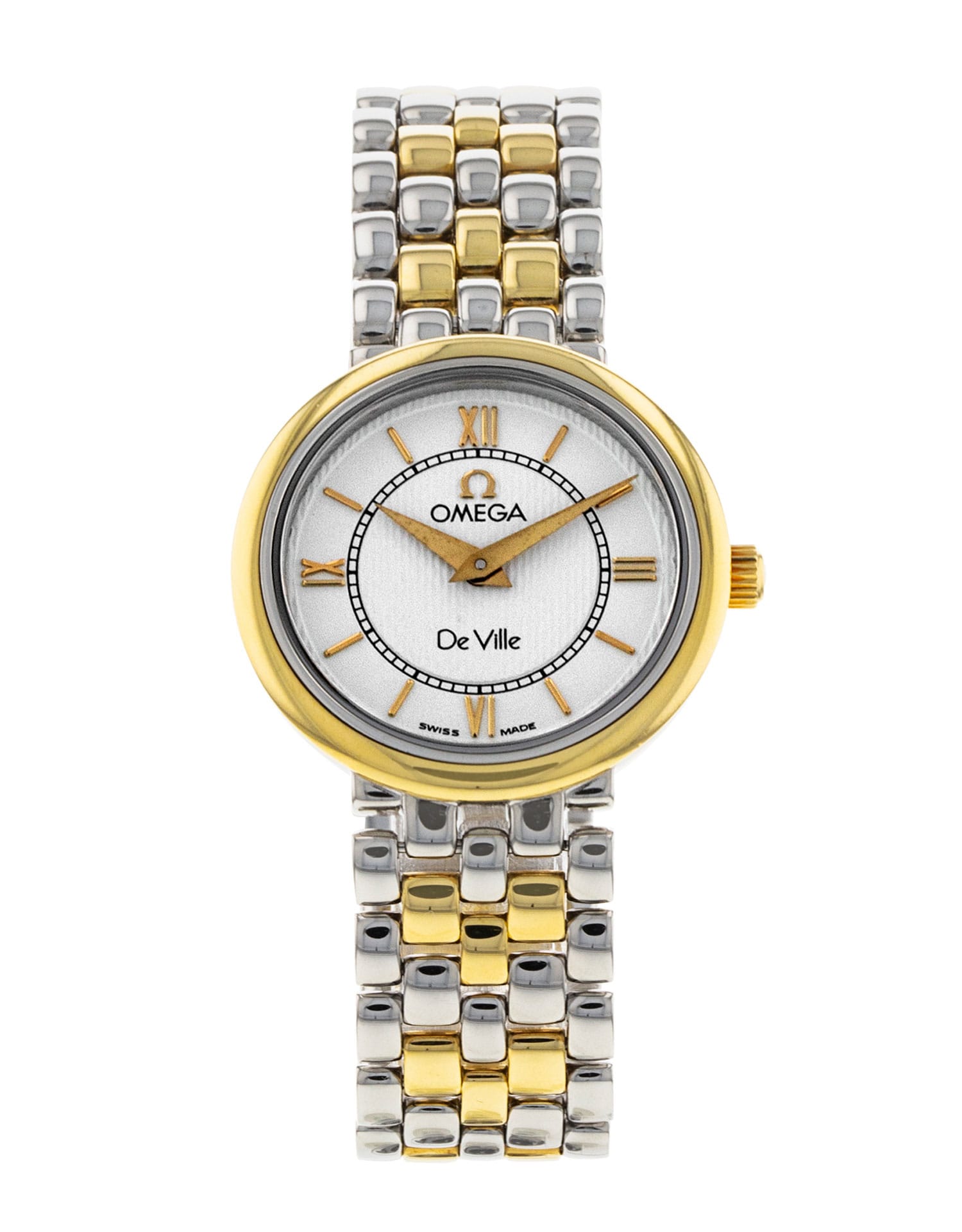 This Omega De Ville Classics 7374.21.00 has a white roman numeral dial and a bracelet strap. This Omega has undergone a thorough inspection of accuracy, functionality and condition at our Omega certified service centre to determine the level of reconditioning required to meet our strict standards. It has also been checked against our records to ensure authenticity. All our watches have a 24-month warranty for your peace of mind.