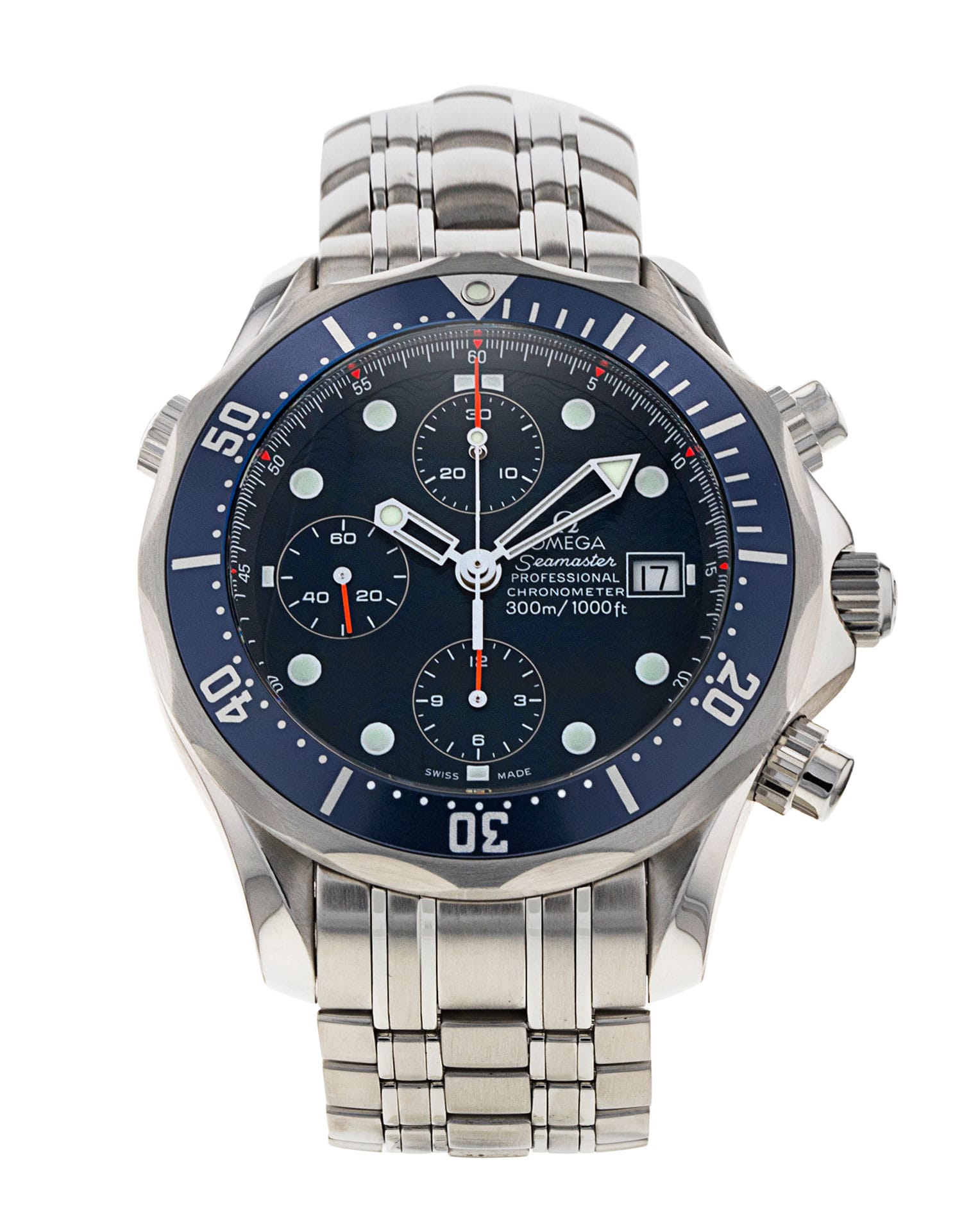 This Omega Seamaster Chrono Diver 2599.80.00 has a blue dial and a bracelet strap. This Omega has undergone a thorough inspection of accuracy, functionality and condition at our Omega certified service centre to determine the level of reconditioning required to meet our strict standards. It has also been checked against our records to ensure authenticity. All our watches have a 24-month warranty for your peace of mind.