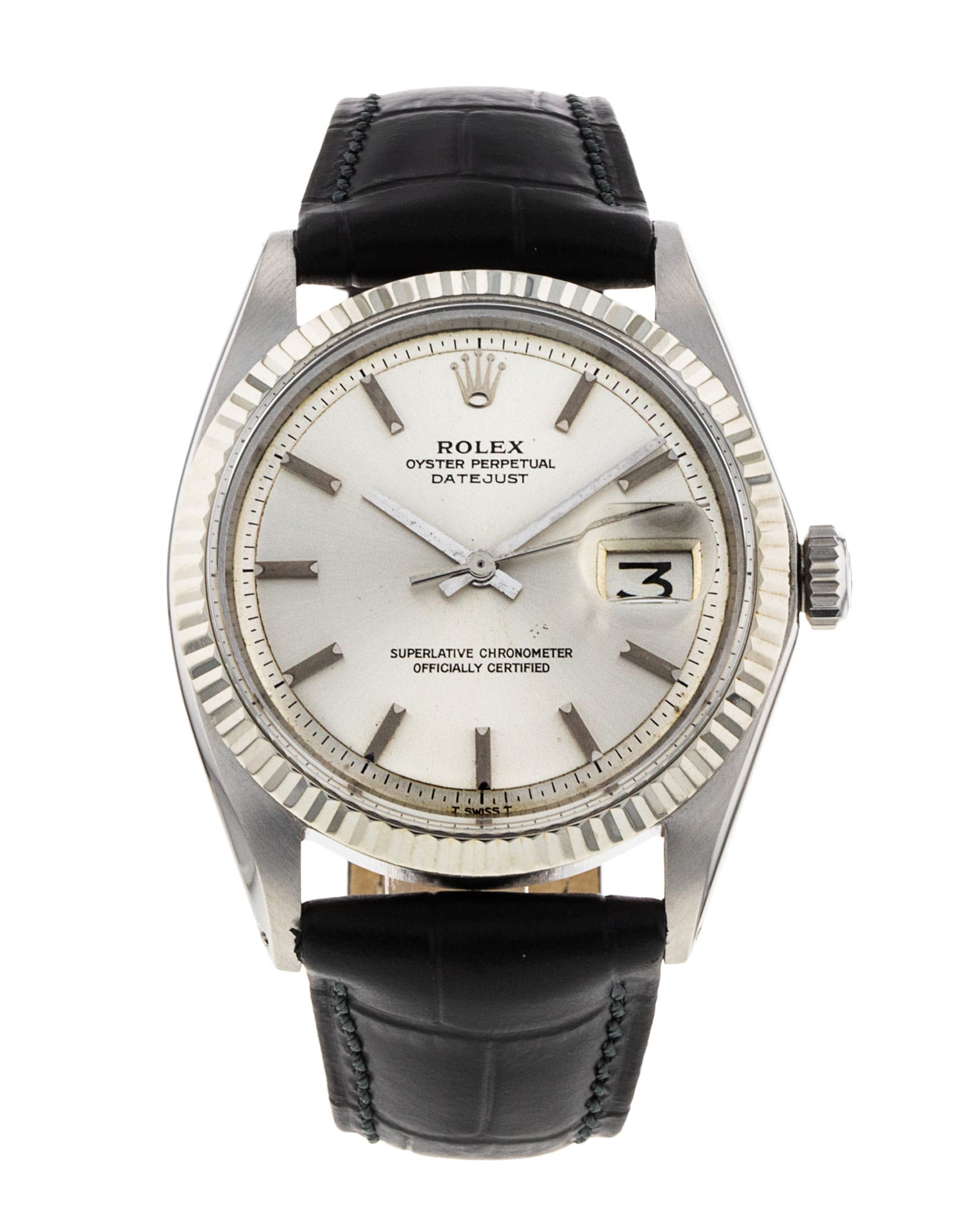 This Rolex Datejust 16014 has a silver baton dial and a leather strap. Due to age, this Rolex may not fall within our typical expected tolerances for timekeeping, and is no longer suitable for use in wet environments or submersion in water. In the interests of preserving original features, utmost care has been taken to sympathetically restore this watch. It has also been referenced against technical documents and manufacturer records where available to ensure authenticity and a clean history. One of our skilled polishing technicians has removed marks on the case and bracelet of this watch, brought about by daily wear and tear, which is why this watch does not come with the remaining manufacturer’s warranty.