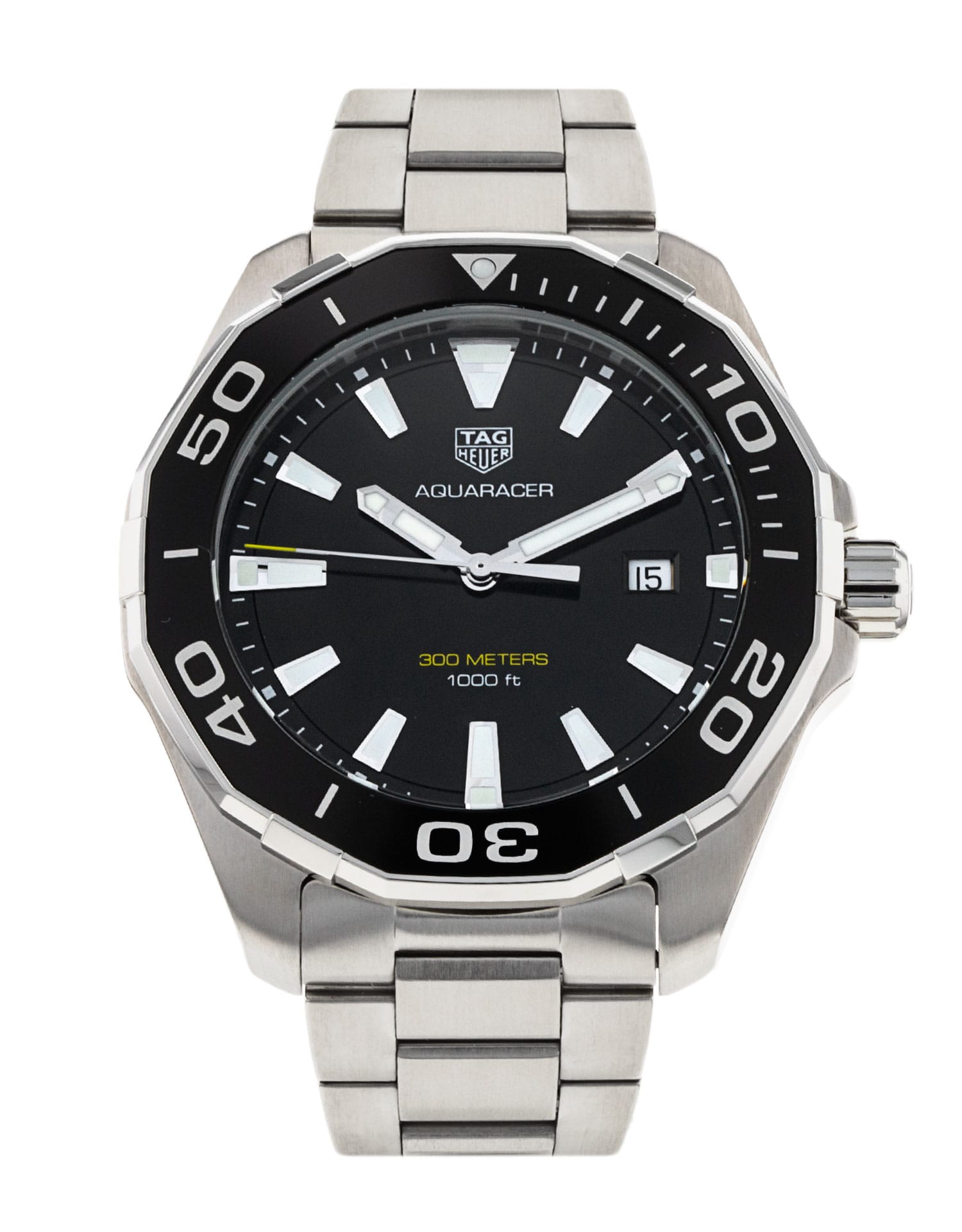 This Tag Heuer Aquaracer WAY101A.BA0746 has a black baton dial and a bracelet strap. This Tag Heuer has undergone a thorough inspection of accuracy, functionality and condition at our Tag Heuer certified service centre to determine the level of reconditioning required to meet our strict standards. It has also been checked against our records to ensure authenticity. All our watches have a 24-month warranty for your peace of mind.