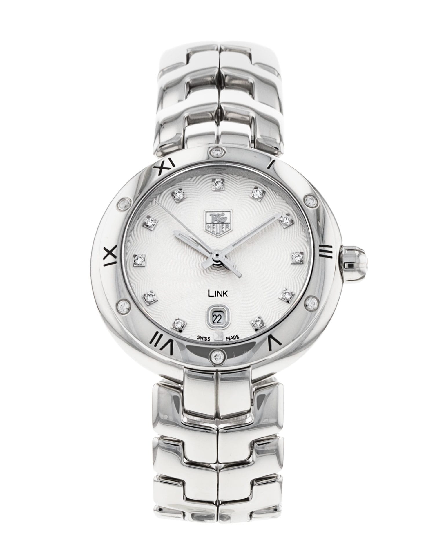 This Tag Heuer Link WAT1413.BA0954 has a silver diamond dial and a bracelet strap. This Tag Heuer has undergone a thorough inspection of accuracy, functionality and condition at our Tag Heuer certified service centre to determine the level of reconditioning required to meet our strict standards. It has also been checked against our records to ensure authenticity. All our watches have a 24-month warranty for your peace of mind.