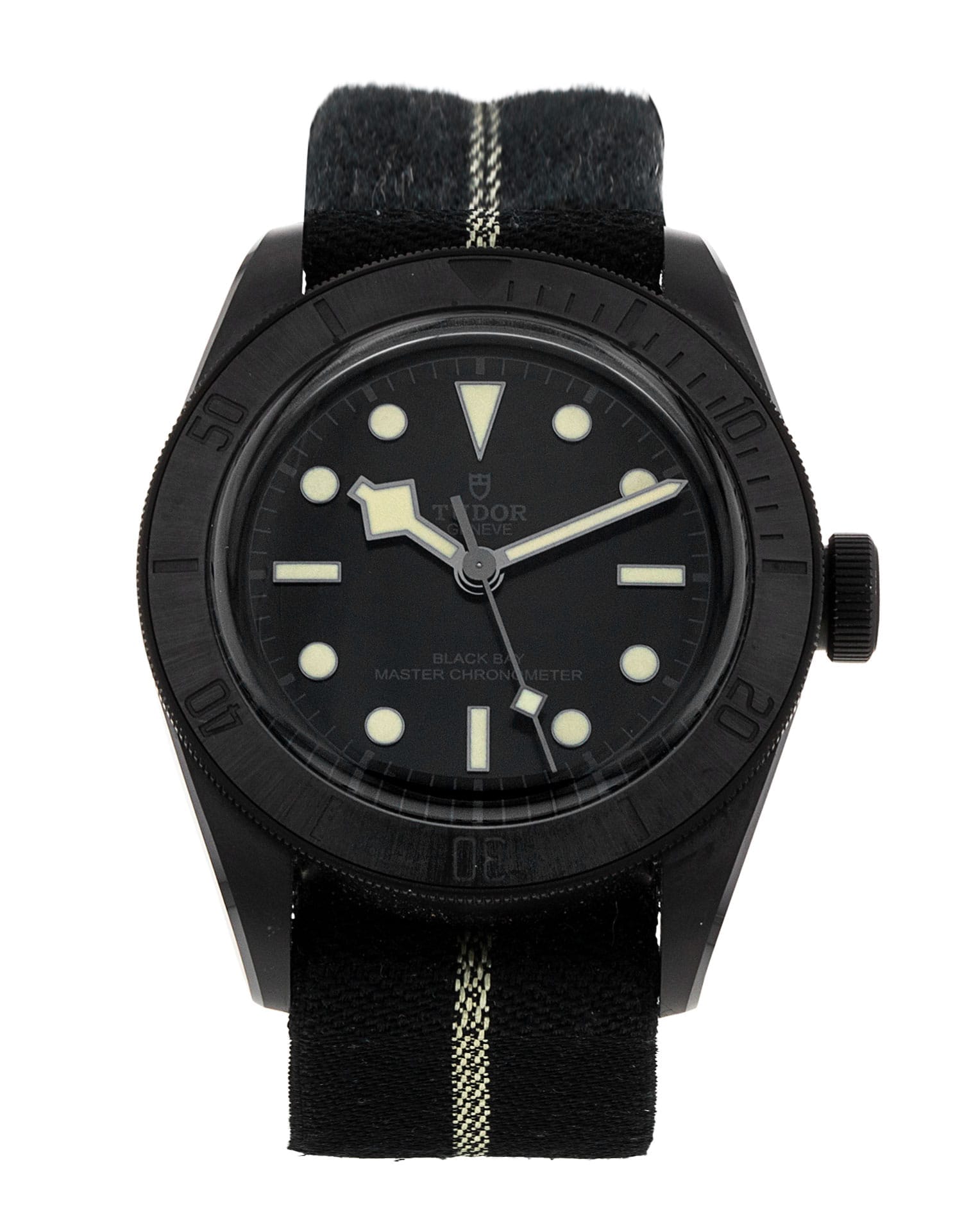 This Tudor Black Bay M79210CNU-0001 has a black dial and a fabric strap. This Tudor has undergone a thorough inspection of water resistance, accuracy, functionality and condition to determine the level of reconditioning required to meet our strict standards. It has also been referenced against technical documents and manufacturer records where available to ensure authenticity and a clean history. Our watches have a 24-month warranty for your peace of mind, in conjunction with any remaining manufacturer’s warranty from new or from service. To maintain the manufacturer’s warranty on this watch, it has not been polished in our service centre.